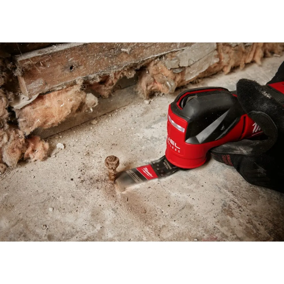 The MILWAUKEE NITRUS CARBIDE Extreme Metal Universal Fit OPEN-LOK Oscillating Multi-Tool Blades provide the ultimate cutting experience, delivering the fastest cutting and longest life on the jobsite. The extreme metal NITRUS CARBIDE multi-tool blade delivers up to 2X more cuts than Carbide Teeth blades – capable of hundreds of cuts in deck screws. The extreme metal blade is ideal for cutting metal fasteners such as bolts, screws, nails, and threaded rods. The new Universal Fit OPEN-LOK Anchor is reinforced for added strength and control and allows for quick blade changes across 100+ multi-tools. Not compatible with Starlock tools. MILWAUKEE oscillating multi-tool blades are designed and made in the USA with global materials. Available in 1, 3, or 5 packs.