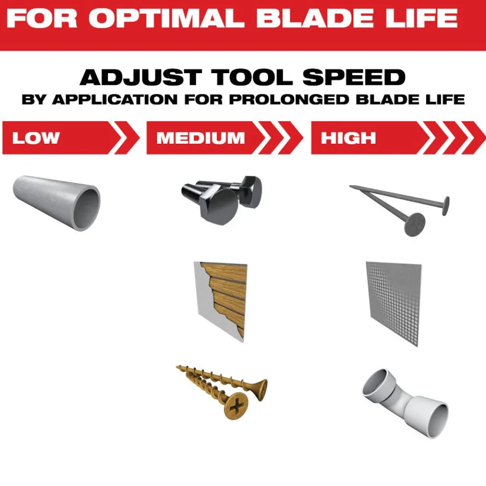 - Carbide Teeth for up to 50x longer life vs bi-metal blades