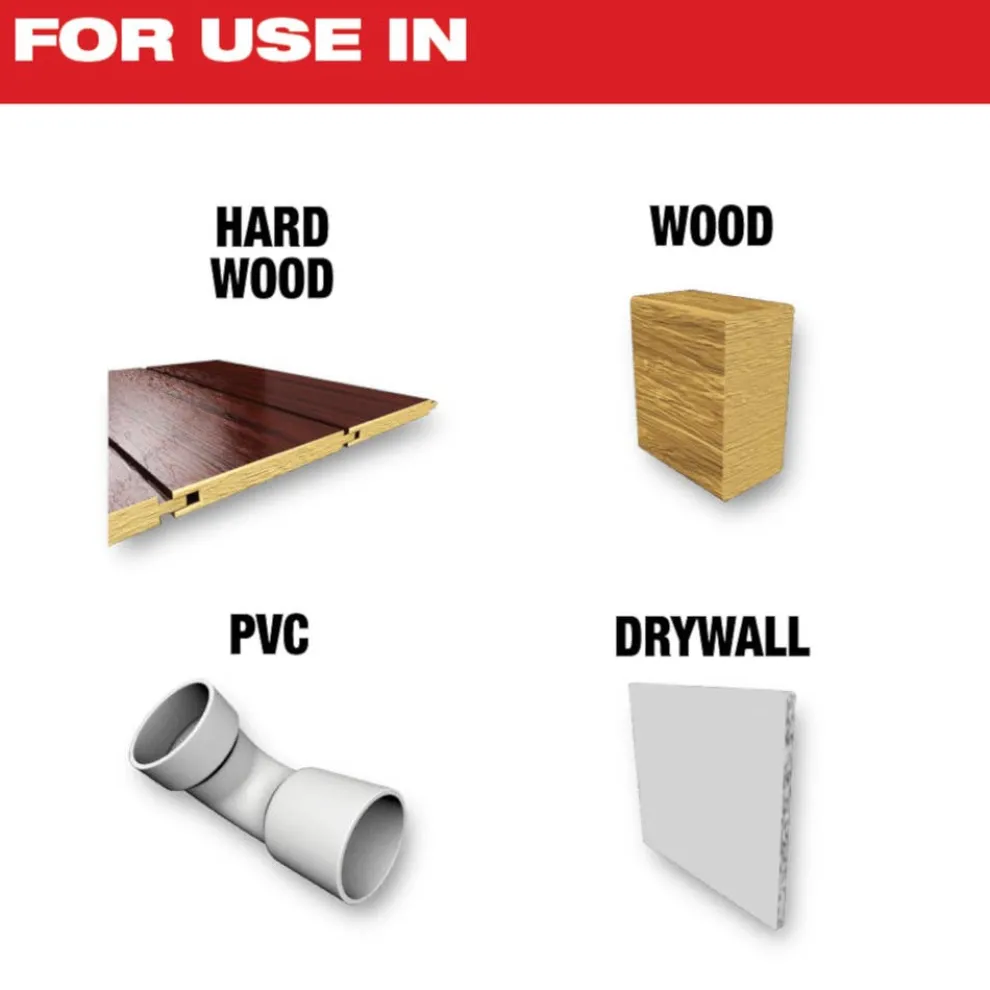 - For use in hardwood, wood, PVC and drywall