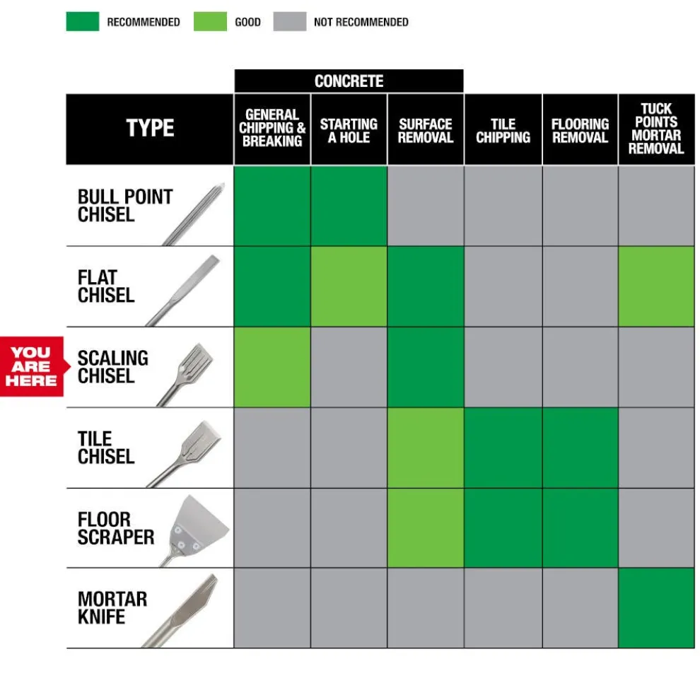 - Longer life in concrete demolition over standard Milwaukee chisels