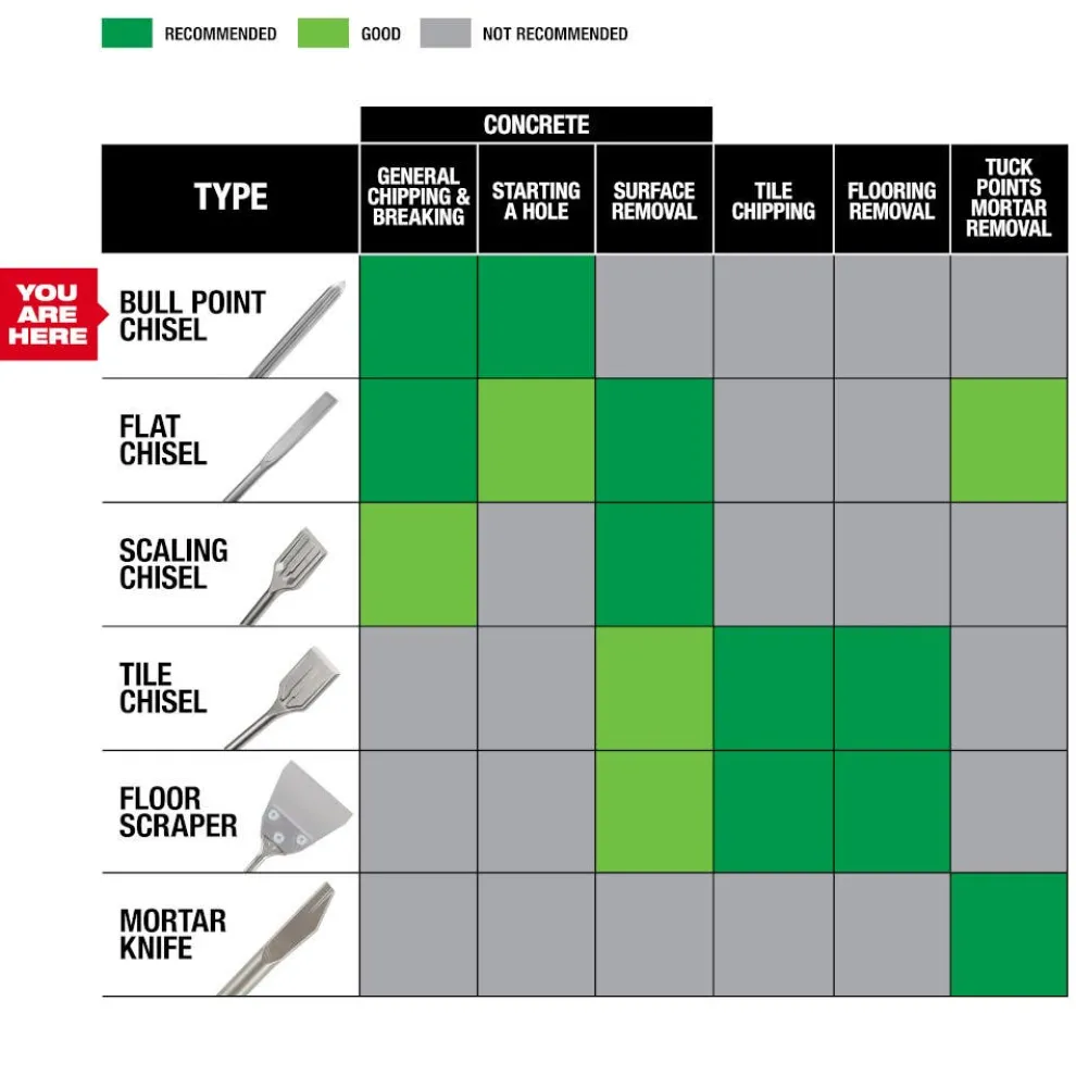 - Longer tip length for up to 3x longer life over standard Milwaukee chisels