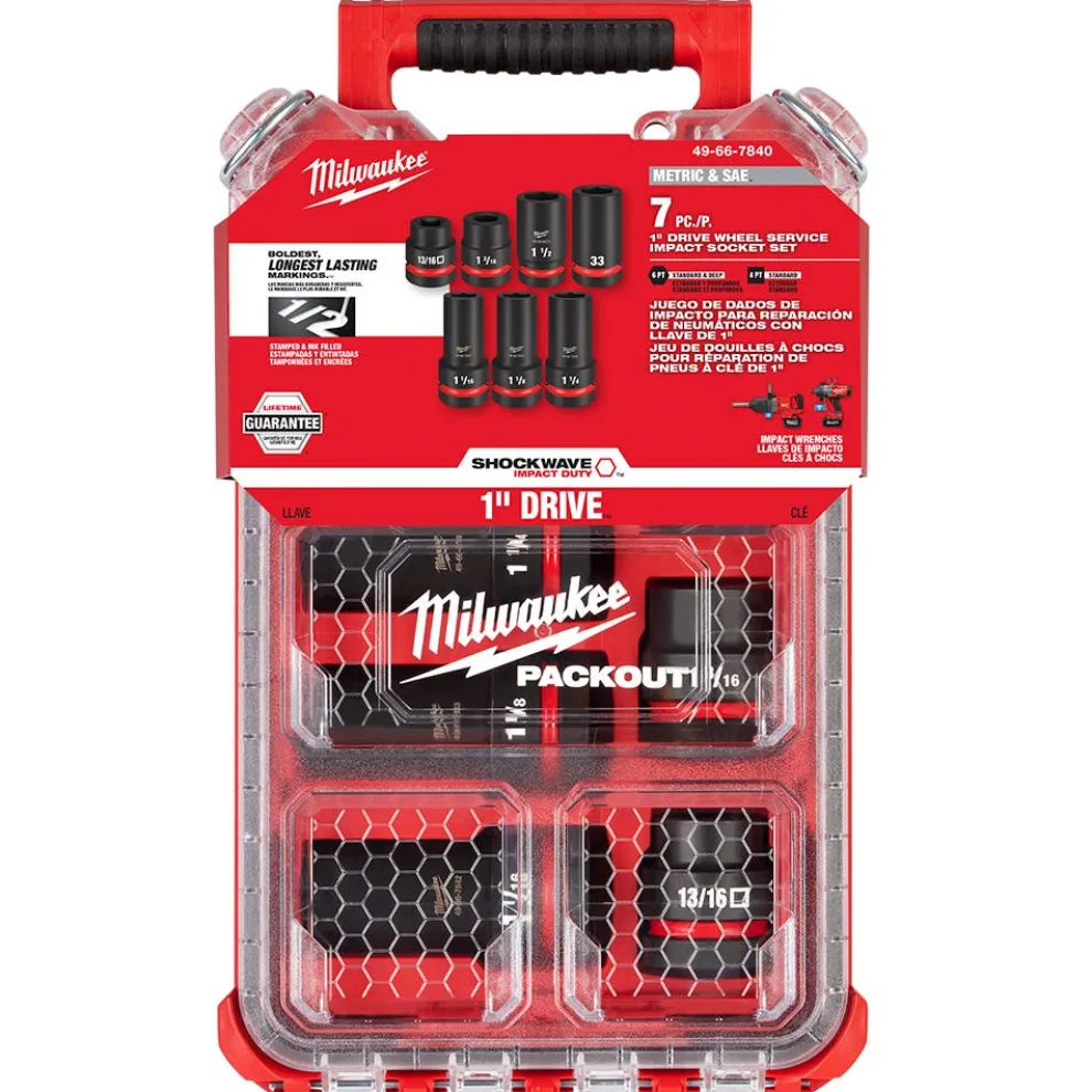 - The set includes both 6-Point and 4-Point sockets, designed with forged impact steel for durability in high torque applications backed by Milwaukee’s Lifetime Guarantee