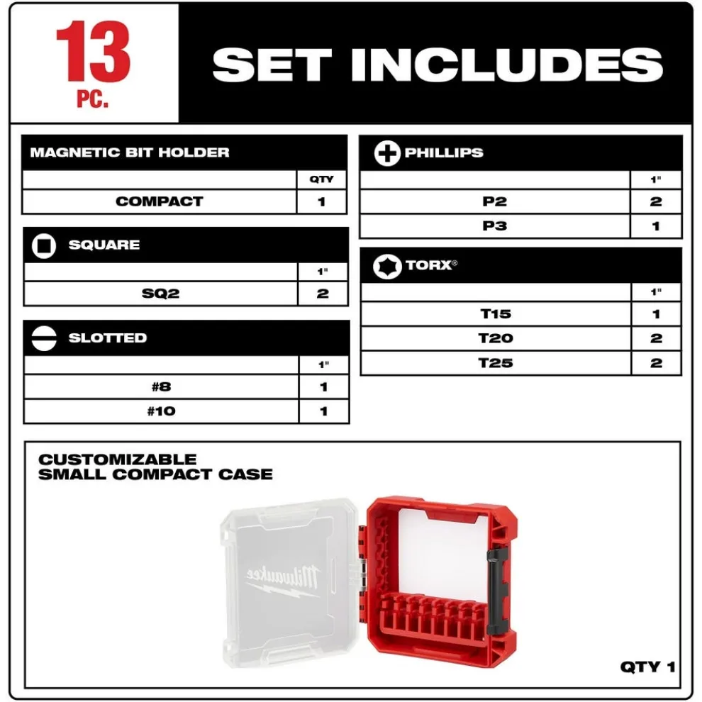 | Bit Sizes | (2) Ph2, (1) Ph3, (2) Sq2, (1) T15, (2) T20, (2) T25, (1) SL8, (1) SL10 |