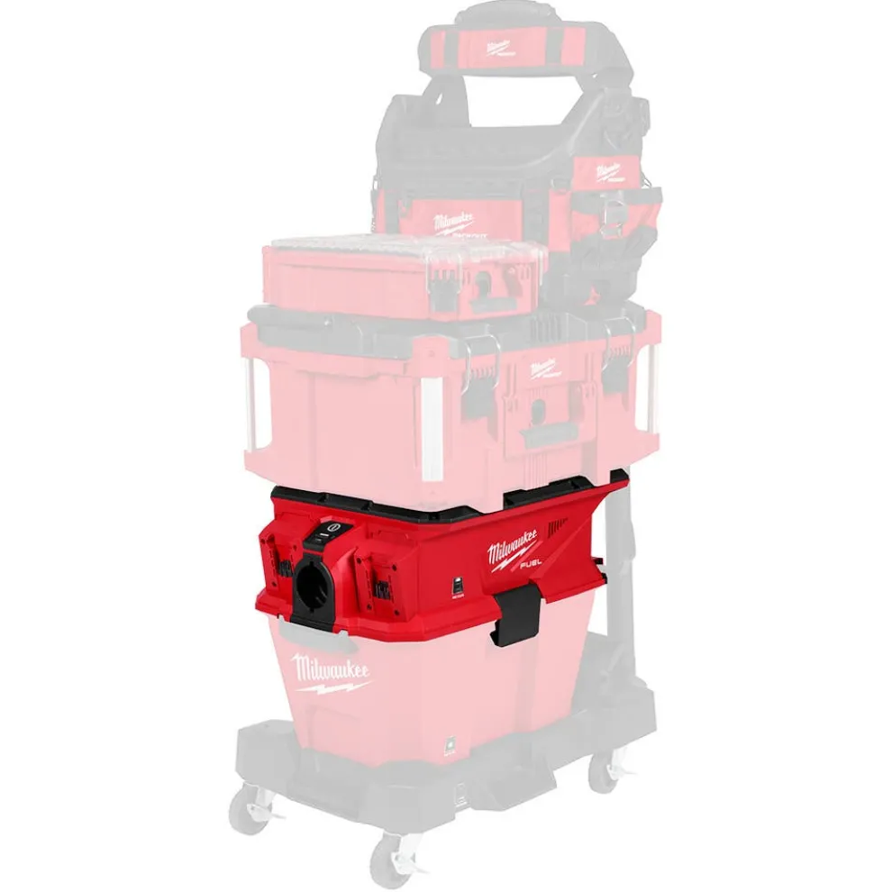 The Milwaukee® M18 FUEL™ NEXUS™ Dual Battery Wet/Dry Vacuum Motor Head w/ PACKOUT™ Compatibility & VACLINK™ DELIVERS CORDED PERFORMANCE to clean up common debris when attached to a Milwaukee® Wet/Dry Vacuum Tank. This Motor Head can clean up more jobsite debris than 4.25 Peak HP wet/dry vacuums without the corded headaches. On (2) M18™ REDLITHIUM™ FORGE™ HD12.0 battery packs, it can clean up to 2,200 sqft. on a single charge or up to 49 minutes of continuous cleaning on max run-time mode. This cordless vacuum eliminates common corded hazards and the need to search for power on the job site. It is quieter than leading corded competitors and is ideal for use in any environment. This vacuum is part of the NEXUS™ Modular Vacuum System, allowing users to customize their cleanup experience with interchangeable motorheads for varying power, tanks for holding capacity, carts for mobility, and add-on components to enhance the cleanup experience. The top of the product is fully compatible with the Milwaukee® PACKOUT™ Modular Storage System. This Motor Head can be paired with any Milwaukee® NEXUS™ 6, 9, or 12 gallon Wet/Dry Vacuum Tank (0912, 0922, 0932). Also equipped with VACLINK™ Wireless Dust Control, compatible tools, and vacuums can connect, allowing users to activate their vacuum remotely. The included VACLINK™ Wireless Dust Control Remote provides on/off power control at the hose end, maximizing cleanup efficiency by eliminating wasted run-time.